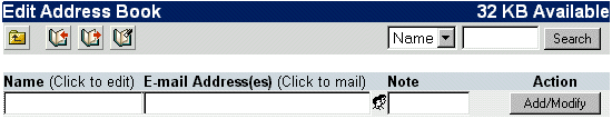 Once you have all your e-mail addresses in place, you may want to edit them later. To edit an entry, click the Name of the entry, and it will appear in the editing area above. You can click within the text field of the entry information you wish to edit and type what you wish. Once you are finished editing the entry, click Add/Modify.